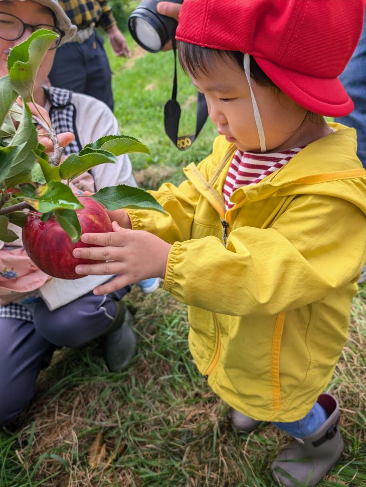 トップ お知らせ りんご狩りに行ったよ(1・2歳児クラス) 2024年10月03日 数日前からりんごの木を保育室に作って楽しみにしていたりんご狩り♪ 今日バスに乗って、果樹園まで行きました! 木に沢山実っている真っ赤なりんごに目を輝かせ感嘆の声を上げていました(^^)/ りんごをくるくると回すと、ポロっととることができ、大事に握りしめていました‼ 一覧へ